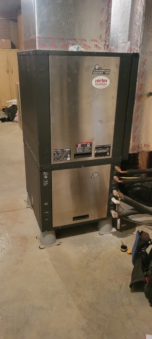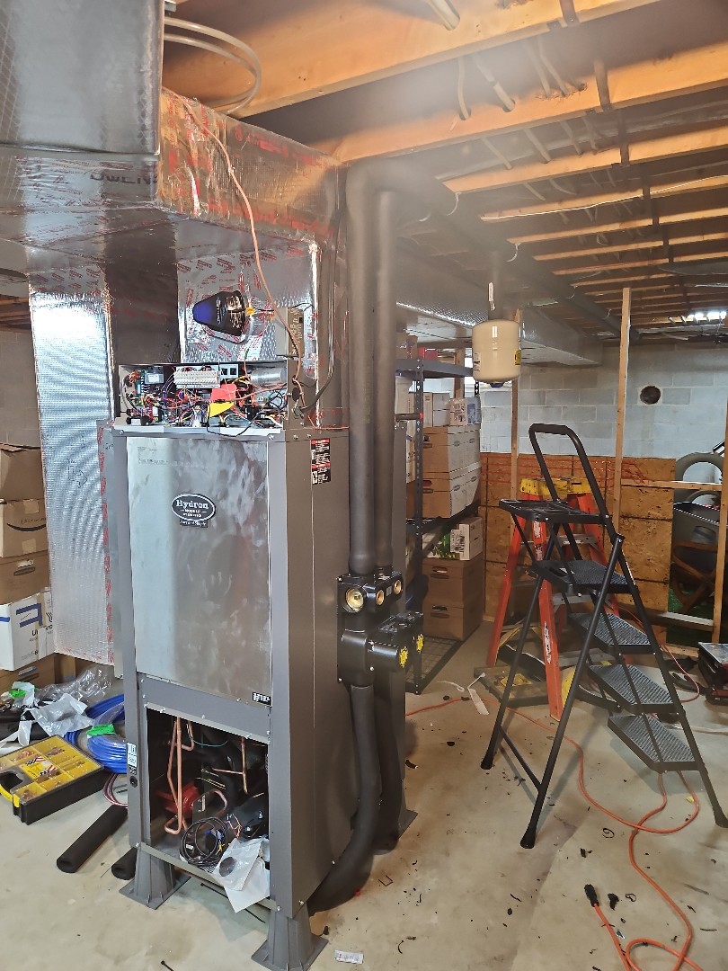 performing minisplit and geothermal install replacing an inverter carrier unit.